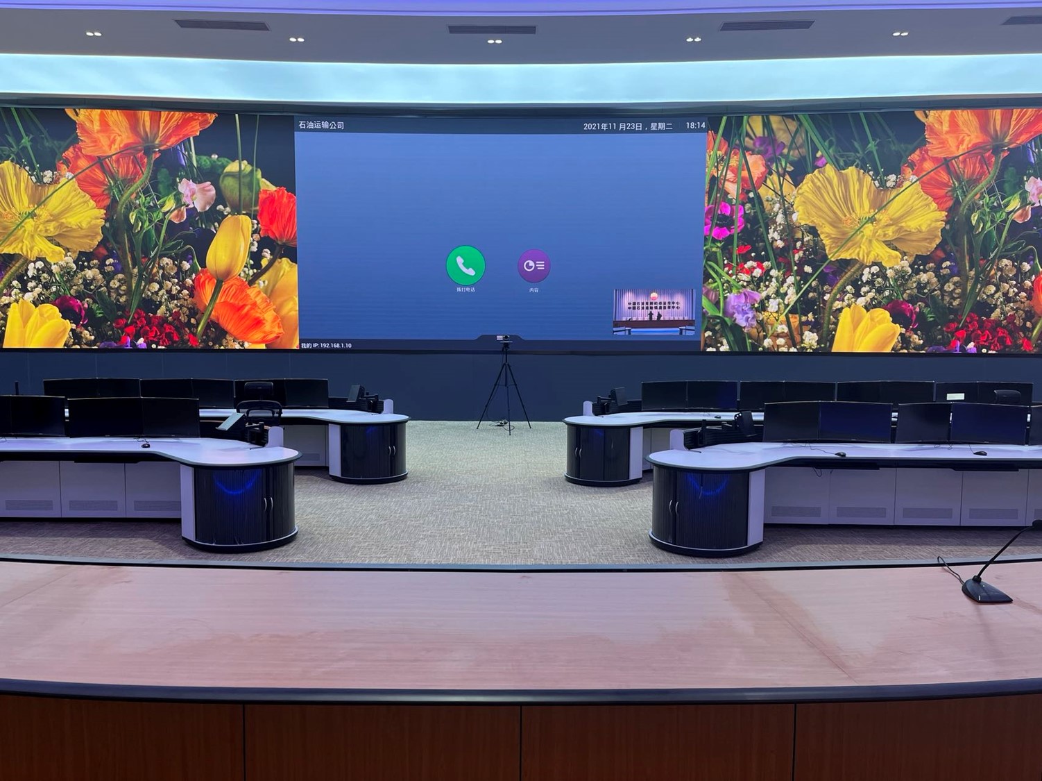 中國石油運(yùn)輸公司調(diào)度中心項(xiàng)目位于北京順義和新疆烏魯木齊兩地,兩地調(diào)度中心各建1套1.56mm的LED監(jiān)控大屏,并重點(diǎn)對兩地視頻會議功能進(jìn)行升級,由原來模擬視頻會議終端升級為高清終端,實(shí)現(xiàn)雙路高清攝像機(jī)信號的實(shí)時切換及雙流顯示。保證兩地調(diào)度中心會場互聯(lián)互通,實(shí)現(xiàn)視頻交流,通過集團(tuán)M